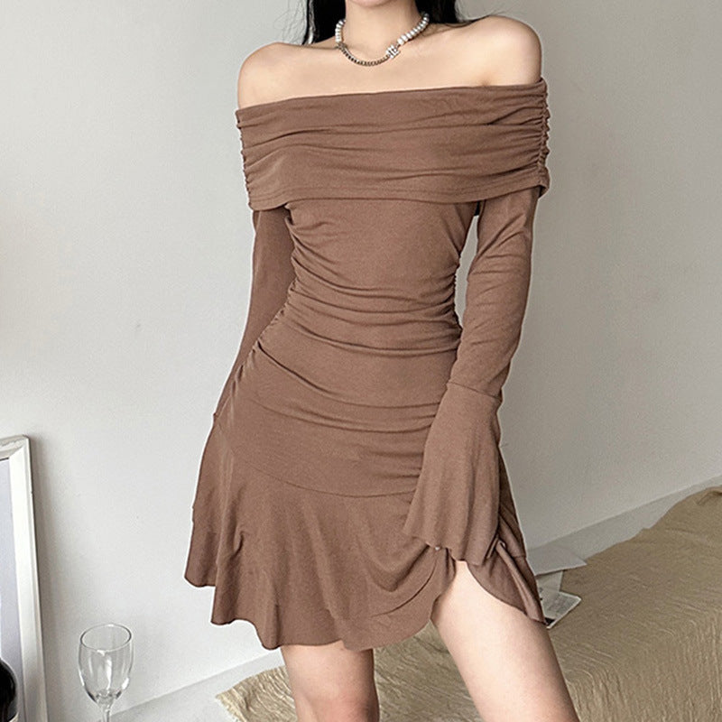 ï»?span data-mce-fragment="1">It's made from ribbed knit fabric. cuts to a bodycon silhouette. features flared cuffs. ruched detailing. and has tiered ruffle hem design.