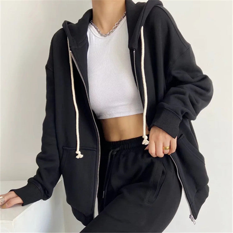 These staple preppy schoolgirl-vibe hoodies cut to a relax silhouette. with drop shoulders. 2 side pockets and zip fasten design.