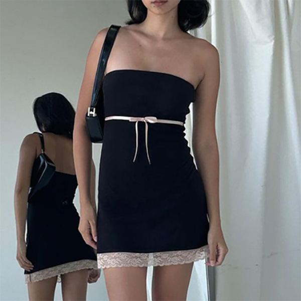 Sleek and sophisticated. this black. strapless lace sheath dress will make you look and feel like a total bombshell! With its vintage style and polyester-fiber composition. it's perfect for any vacation. sexy street or sweet occasion!