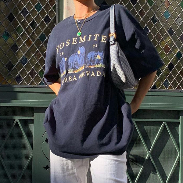 This Vintage Bear Graphic Oversized Tee is sure to bring a unique and stylish look to your wardrobe. The premium 91-99% Cotton material is lightweight. breathable. and comfortable. The Nevada bear pattern is perfect for any casual occasion. The Spandex component adds a touch of stretch and flexibility. Enjoy the preppy.sweet and Vintage look with this round neck Tee.