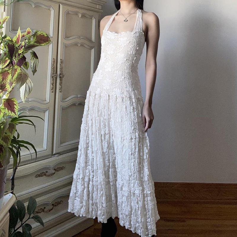 ï»?span data-mce-fragment="1">Features a halter style. with floral pattern featuring. slightly frill trims design and concealed zip fasten along back.